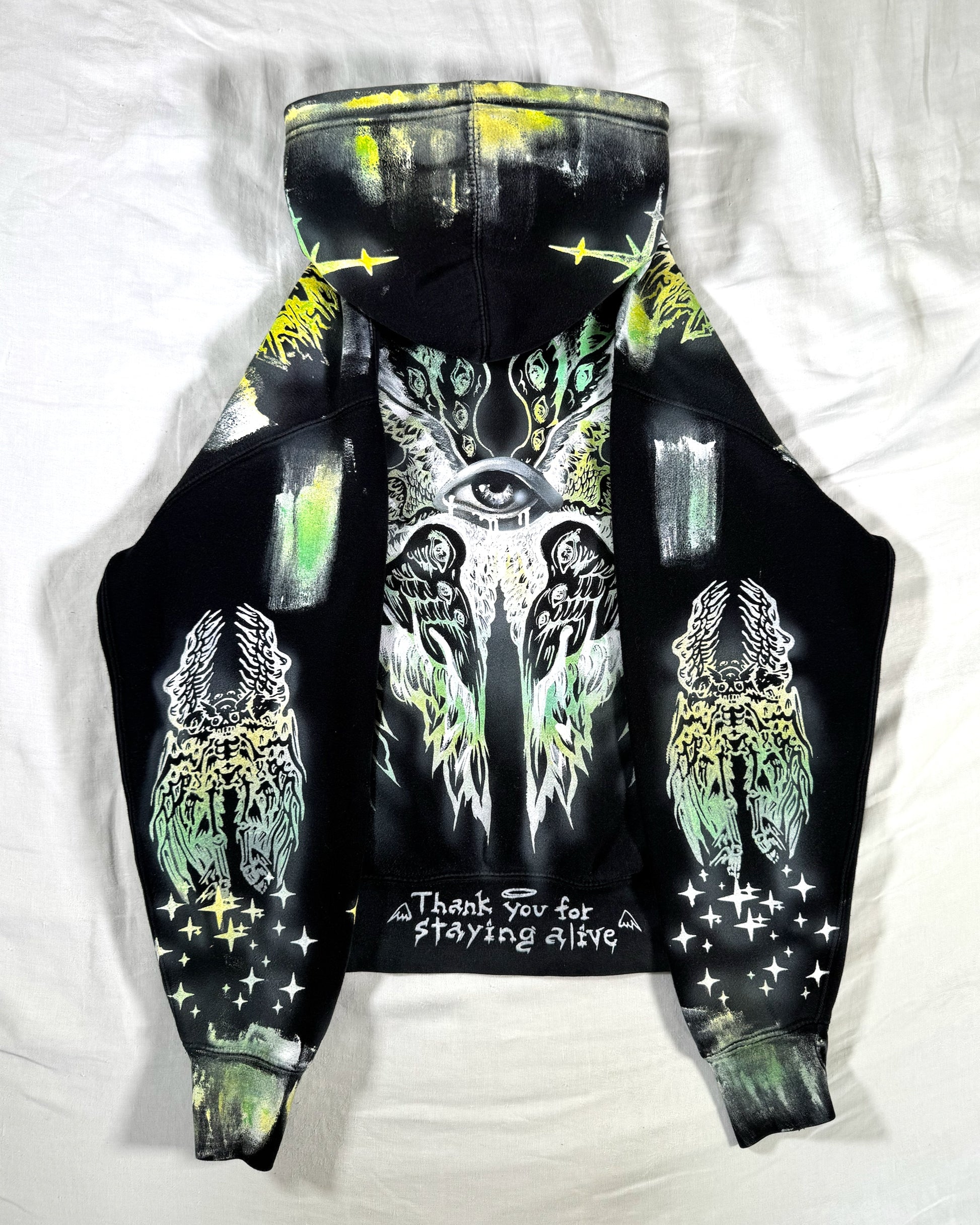 — Dyed, Screen-Printed & Hand-Painted with fabric ink.
