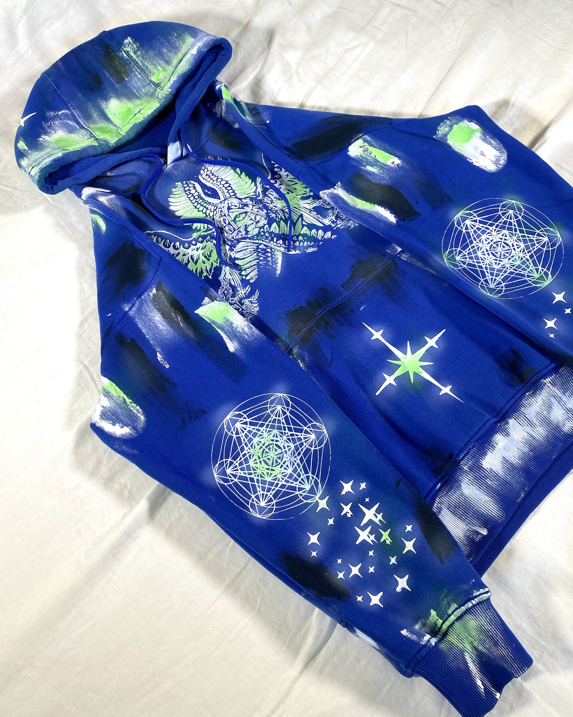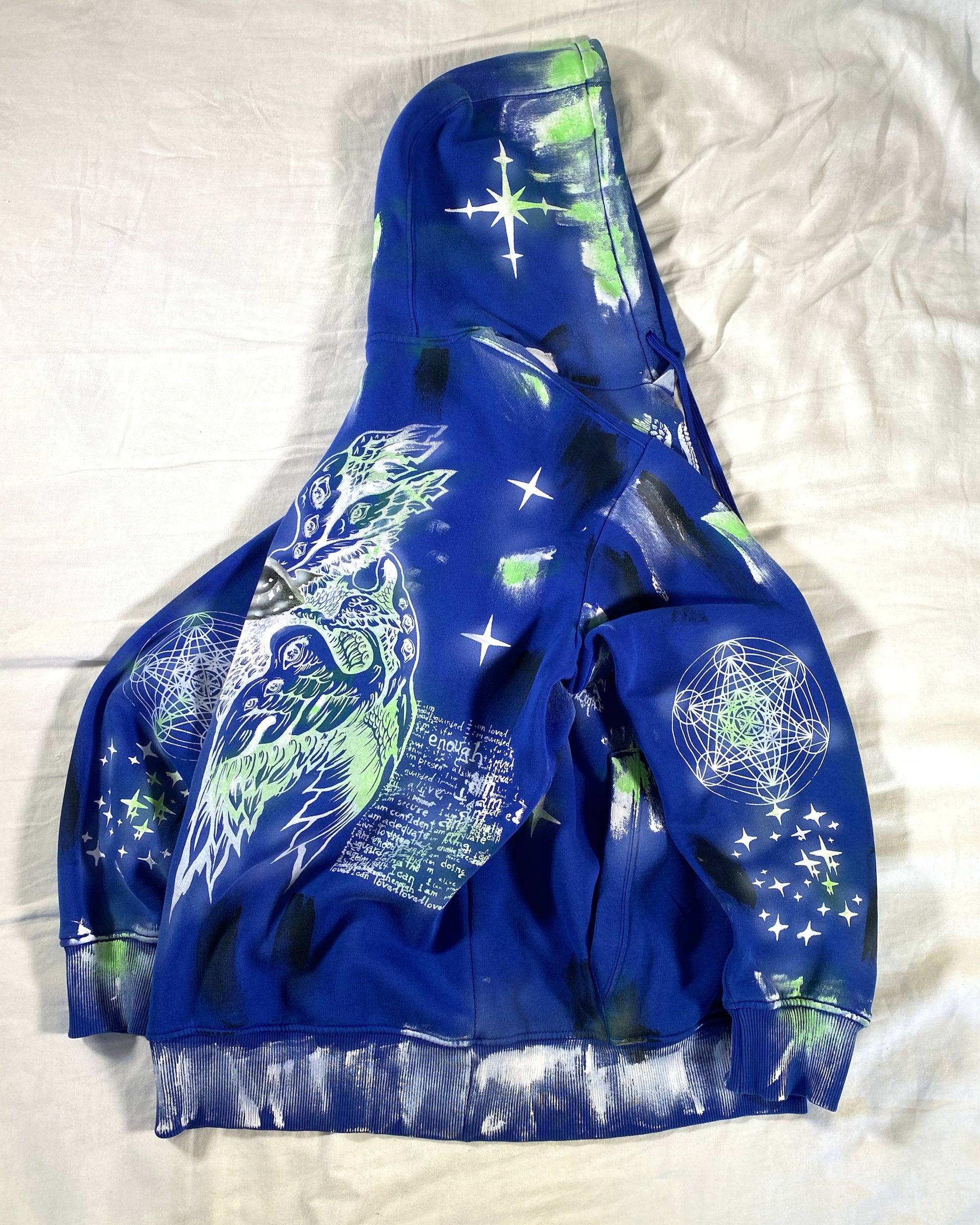 — Dyed, Screen-Printed & Hand-Painted with fabric ink.