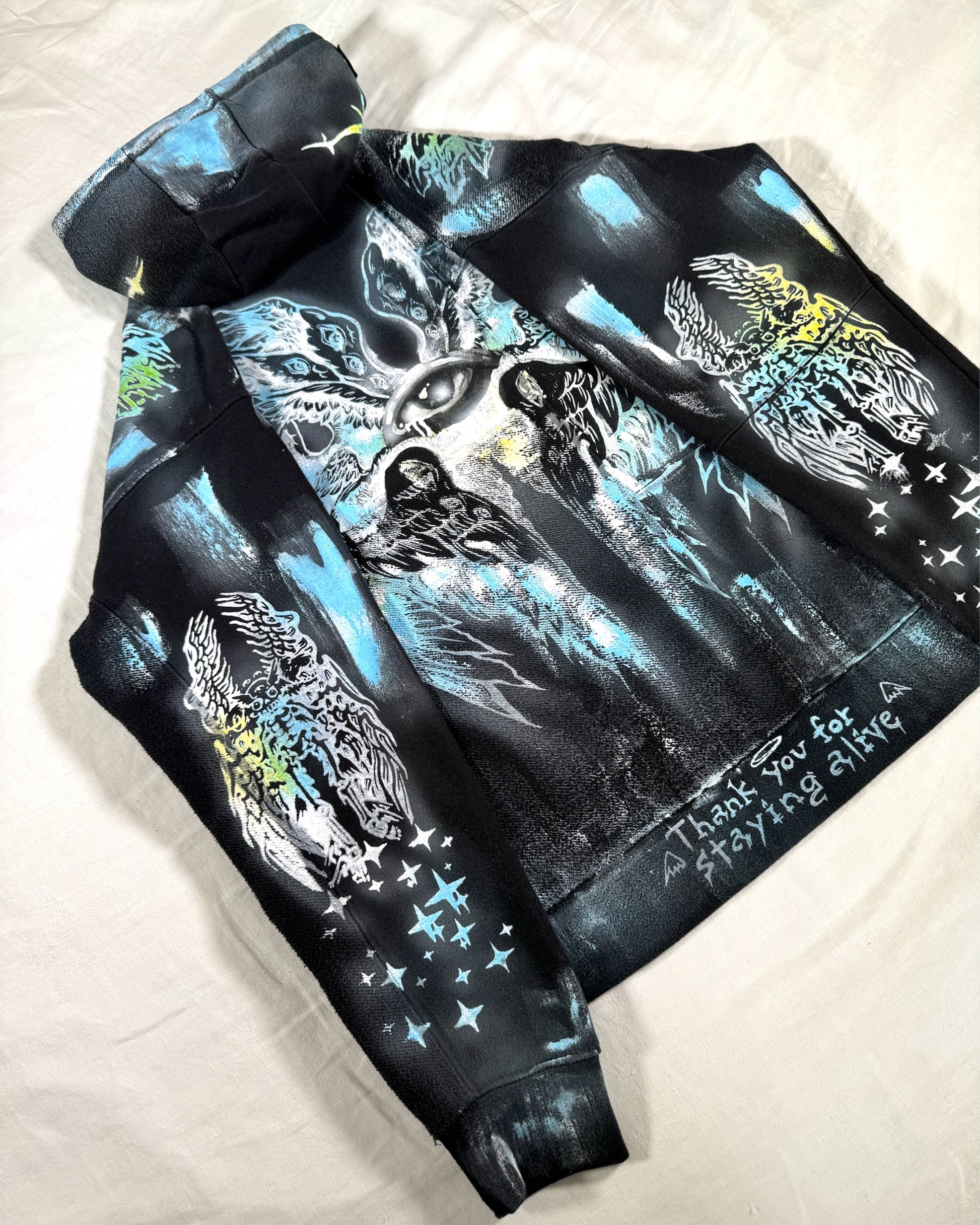 — Dyed, Screen-Printed & Hand-Painted with fabric ink.