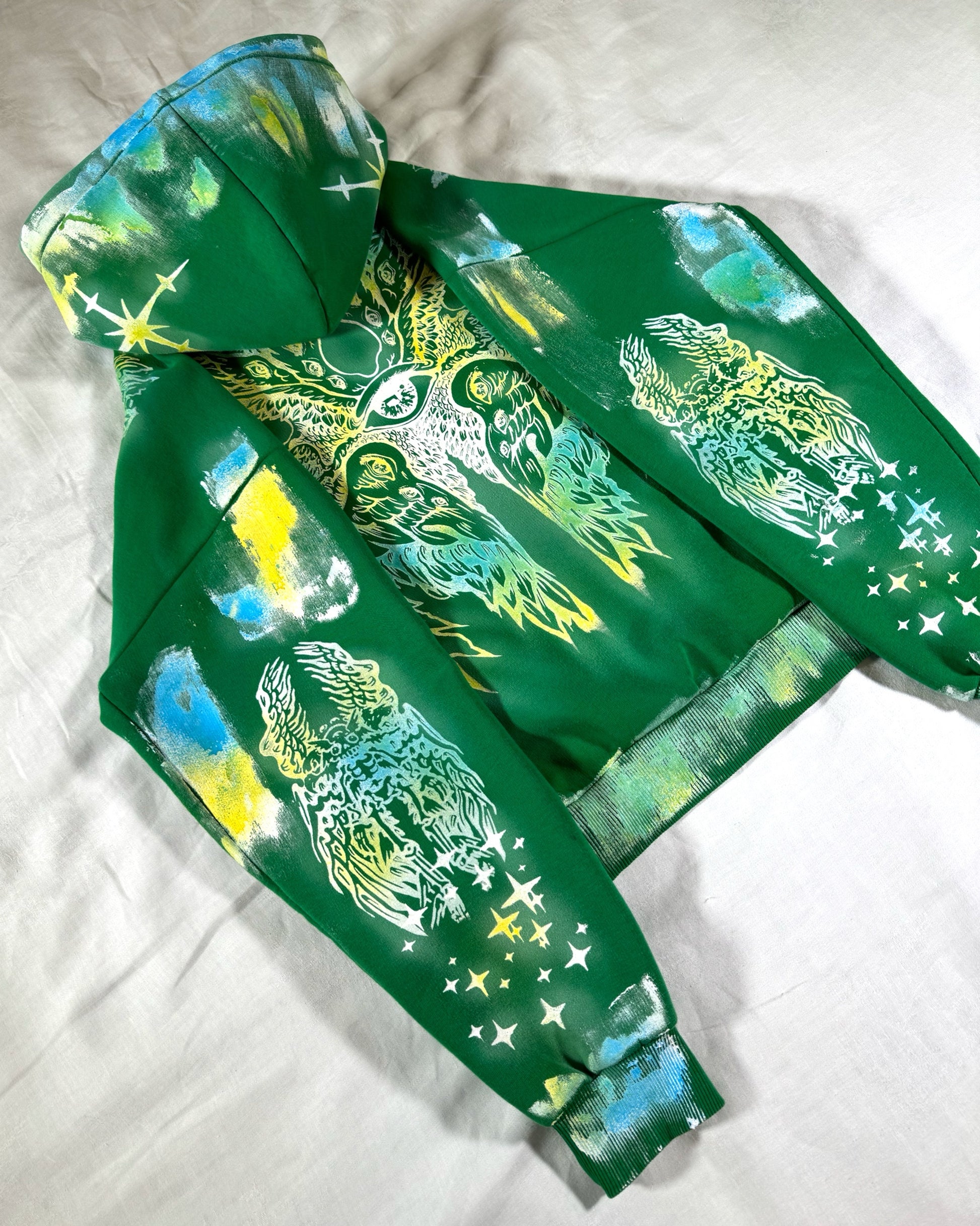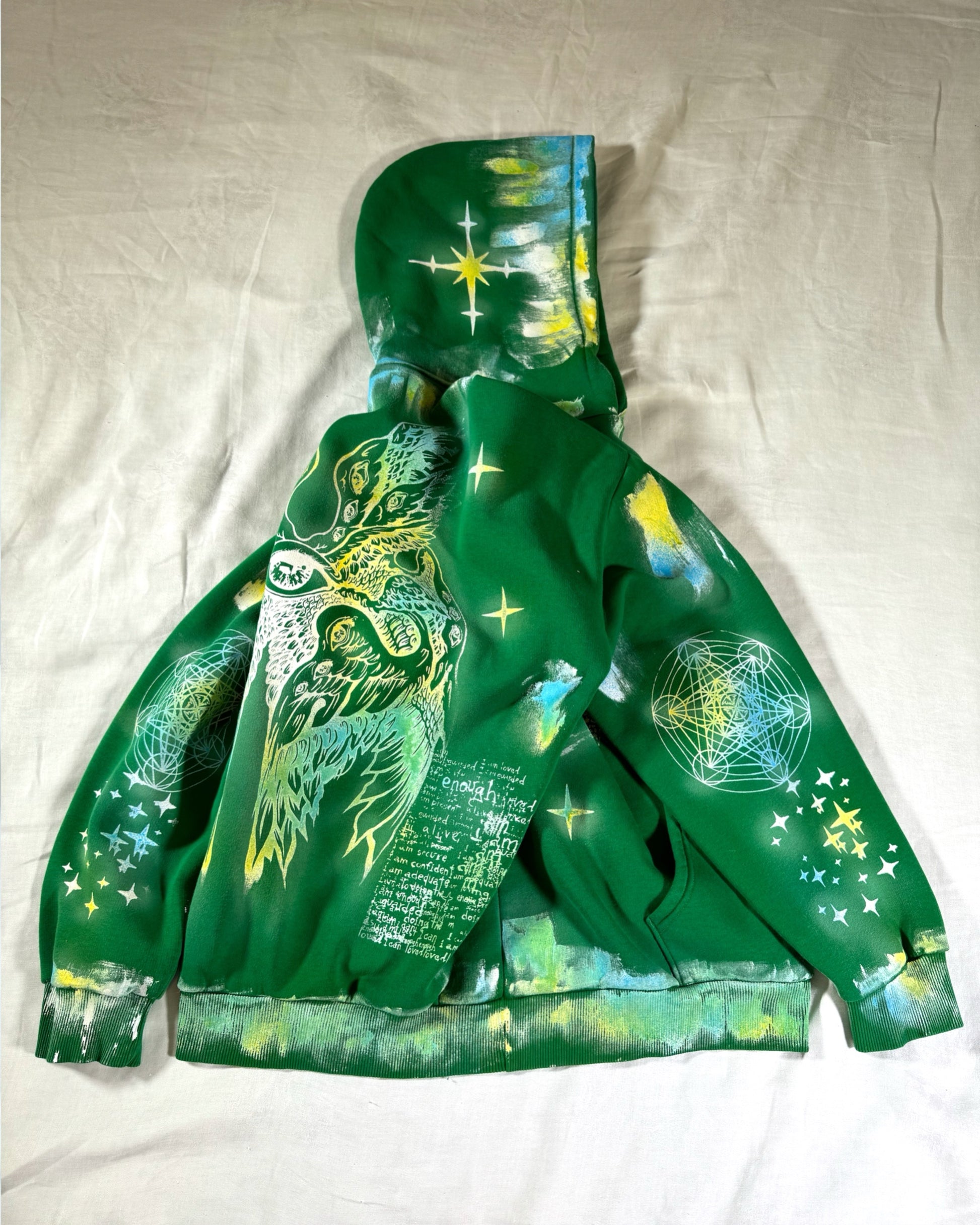 — Dyed, Screen-Printed & Hand-Painted with fabric ink.