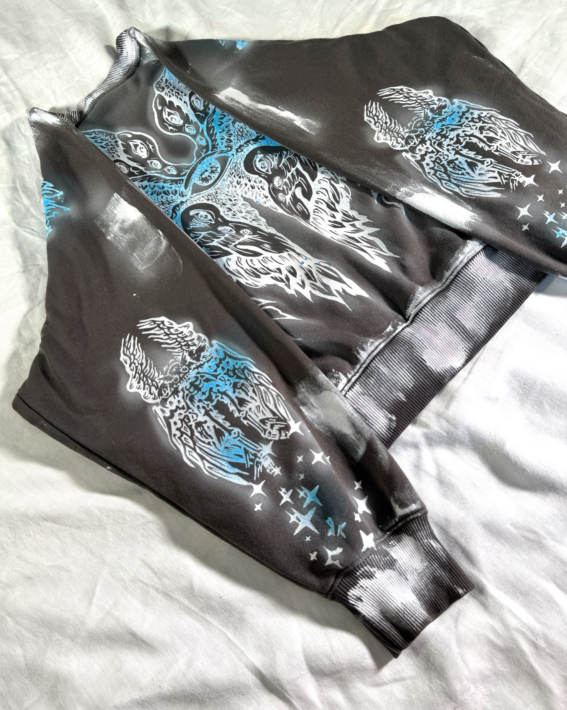 — Dyed, Screen-Printed & Hand-Painted with fabric ink.